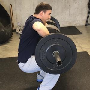 One of the reason the log clean and press can be difficult is due to the seemingly unlimited variations in the log. This also helps create technique that combines almost five traditional lifts into one total body beat down. As I stated earlier, logs can come in various sizes and the diameter is the biggest variant. Typically, women will press a 10” diameter log and men will press a 12” diameter log. The smaller the log the easier it is to press but the clean is more difficult. The larger the log the easier the clean and the harder the press. The log clean is significantly different than an Olympic style clean with a barbell. To get the log from the ground to the shoulders you would start by standing directly in front of it with feet at shoulder with or slightly wider. Hinge at the hips and grab hold of the handles. From here you will do a combination of a deadlift and a row to get the log to your lap. You’ll sit down so you can have the log resting on your thighs but pinned to your upper chest. At this point you will squeeze your upper back to engage the lats, rear delts and traps to keep the log pinned to the chest while you begin to stand up and roll the log up the chest to the shoulders. As you’re reading this I’m sure you’re thinking, “That’s a lot of work just to get the log to the shoulders”. You’re right. There are numerous movements involved in just getting the log to the shoulders (deadlift/row, front squat, triple extension of the knees, hips and upper back). This is part of what makes this movement so great; it involves numerous muscles and movements in one lift.